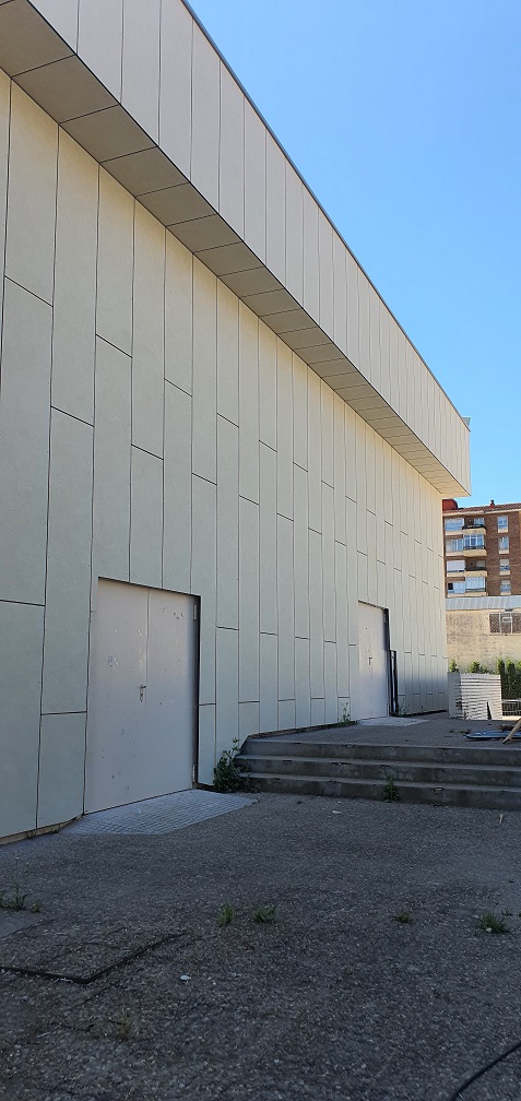 Mejora de la eficiencia energética del I.E.S. “Hermanos D´Elhuyar” de Logroño a través de la mejora de su envolvente térmica. Se realiza una fachada ventilada con aislamiento de materiales reciclados; además del cambio de las carpinterías exteriores.